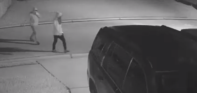 Security video captured a car arriving in the area, and two young men get out and get busy with their chosen vocation---thieving. They go to the first property and flip the door handles.